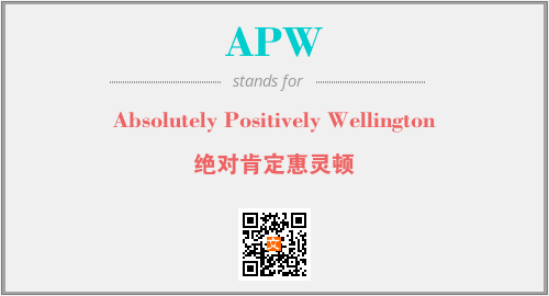 以上为Absolutely Positively Wellington英文缩略词APW的中文解释,以及该英文缩写在英语的流行度、分类和应用领域方面的信息。