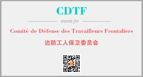 上述内容是“Comité de Défense des Travailleurs Frontaliers”作为“CDTF”的缩写,解释为“边防工人保卫委员会”时的信息,以及英文缩略词CDTF所代表的英文单词,其对应的中文拼音、详细解释以及在英文中的流行度和相关分类、应用领域及应用示例等。