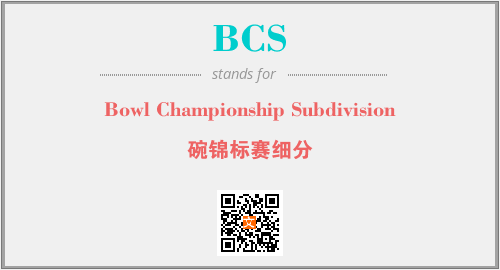 以上为Bowl Championship Subdivision英文缩略词BCS的中文解释,以及该英文缩写在英语的流行度、分类和应用领域方面的信息。