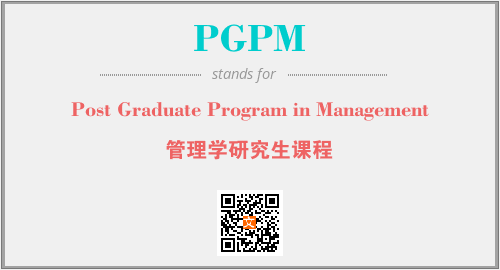 以上为Post Graduate Program in Management英文缩略词PGPM的中文解释,以及该英文缩写在英语的流行度、分类和应用领域方面的信息。