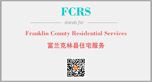 英文缩略词“FCRS”经常作为“Franklin County Residential Services”的英文缩写来使用,中文表示:“富兰克林县住宅服务”。本文将详细介绍英文缩写词FCRS所代表英文单词,其对应的中文拼音、详细解释以及在英语中的流行度。此外,还有关于缩略词FCRS的分类、应用领域及相关应用示例等。