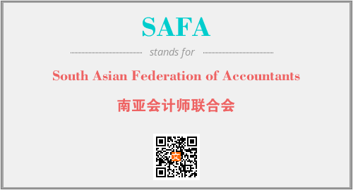 上述内容是“South Asian Federation of Accountants”作为“SAFA”的缩写,解释为“南亚会计师联合会”时的信息,以及英文缩略词SAFA所代表的英文单词,其对应的中文拼音、详细解释以及在英文中的流行度和相关分类、应用领域及应用示例等。