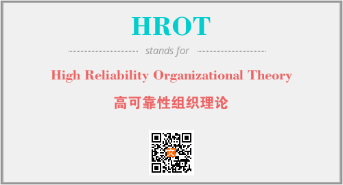 上述内容是“High Reliability Organizational Theory”作为“HROT”的缩写,解释为“高可靠性组织理论”时的信息,以及英文缩略词HROT所代表的英文单词,其对应的中文拼音、详细解释以及在英文中的流行度和相关分类、应用领域及应用示例等。