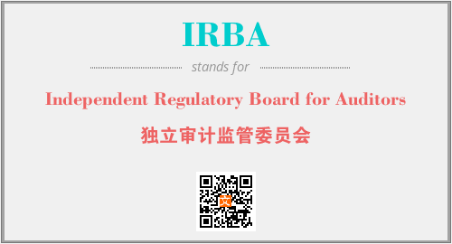 上述内容是“Independent Regulatory Board for Auditors”作为“IRBA”的缩写,解释为“独立审计监管委员会”时的信息,以及英文缩略词IRBA所代表的英文单词,其对应的中文拼音、详细解释以及在英文中的流行度和相关分类、应用领域及应用示例等。