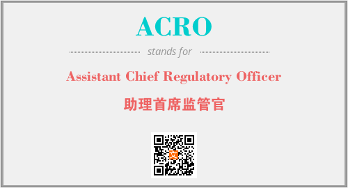 以上为Assistant Chief Regulatory Officer英文缩略词ACRO的中文解释,以及该英文缩写在英语的流行度、分类和应用领域方面的信息。