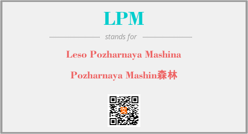 英文缩略词“LPM”经常作为“Leso Pozharnaya Mashina”的英文缩写来使用,中文表示:“Pozharnaya Mashin森林”。本文将详细介绍英文缩写词LPM所代表英文单词,其对应的中文拼音、详细解释以及在英语中的流行度。此外,还有关于缩略词LPM的分类、应用领域及相关应用示例等。