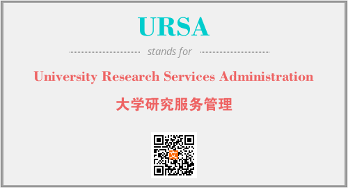 英文缩略词“URSA”经常作为“University Research Services Administration”的英文缩写来使用,中文表示:“大学研究服务管理”。本文将详细介绍英文缩写词URSA所代表英文单词,其对应的中文拼音、详细解释以及在英语中的流行度。此外,还有关于缩略词URSA的分类、应用领域及相关应用示例等。