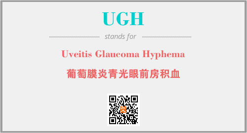上述内容是“Uveitis Glaucoma Hyphema”作为“UGH”的缩写,解释为“葡萄膜炎青光眼前房积血”时的信息,以及英文缩略词UGH所代表的英文单词,其对应的中文拼音、详细解释以及在英文中的流行度和相关分类、应用领域及应用示例等。