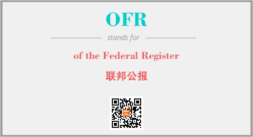 英文缩略词“OFR”经常作为“of the Federal Register”的英文缩写来使用,中文表示:“联邦公报”。本文将详细介绍英文缩写词OFR所代表英文单词,其对应的中文拼音、详细解释以及在英语中的流行度。此外,还有关于缩略词OFR的分类、应用领域及相关应用示例等。