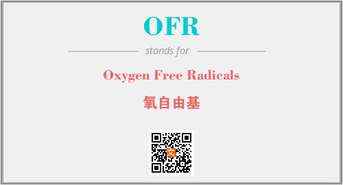 上述内容是“Oxygen Free Radicals”作为“OFR”的缩写,解释为“氧自由基”时的信息,以及英文缩略词OFR所代表的英文单词,其对应的中文拼音、详细解释以及在英文中的流行度和相关分类、应用领域及应用示例等。