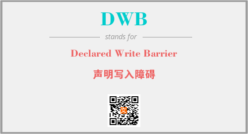 英文缩略词“DWB”经常作为“Declared Write Barrier”的英文缩写来使用,中文表示:“声明写入障碍”。本文将详细介绍英文缩写词DWB所代表英文单词,其对应的中文拼音、详细解释以及在英语中的流行度。此外,还有关于缩略词DWB的分类、应用领域及相关应用示例等。