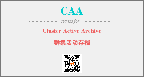 上述内容是“Cluster Active Archive”作为“CAA”的缩写,解释为“群集活动存档”时的信息,以及英文缩略词CAA所代表的英文单词,其对应的中文拼音、详细解释以及在英文中的流行度和相关分类、应用领域及应用示例等。