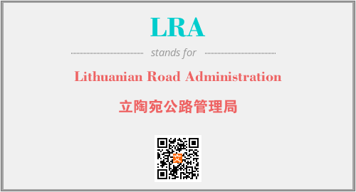 上述内容是“Lithuanian Road Administration”作为“LRA”的缩写,解释为“立陶宛公路管理局”时的信息,以及英文缩略词LRA所代表的英文单词,其对应的中文拼音、详细解释以及在英文中的流行度和相关分类、应用领域及应用示例等。