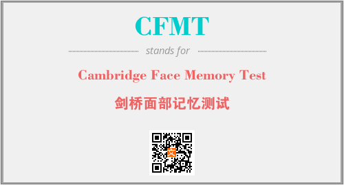 上述内容是“Cambridge Face Memory Test”作为“CFMT”的缩写,解释为“剑桥面部记忆测试”时的信息,以及英文缩略词CFMT所代表的英文单词,其对应的中文拼音、详细解释以及在英文中的流行度和相关分类、应用领域及应用示例等。