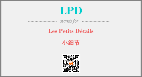 以上为Les Petits Détails英文缩略词LPD的中文解释,以及该英文缩写在英语的流行度、分类和应用领域方面的信息。