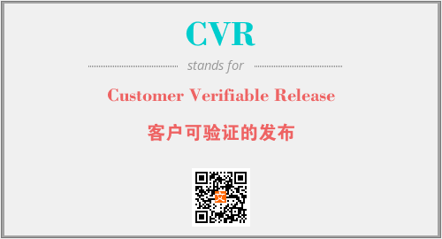 上述内容是“Customer Verifiable Release”作为“CVR”的缩写,解释为“客户可验证的发布”时的信息,以及英文缩略词CVR所代表的英文单词,其对应的中文拼音、详细解释以及在英文中的流行度和相关分类、应用领域及应用示例等。