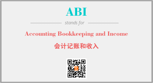 上述内容是“Accounting Bookkeeping and Income”作为“ABI”的缩写,解释为“会计记账和收入”时的信息,以及英文缩略词ABI所代表的英文单词,其对应的中文拼音、详细解释以及在英文中的流行度和相关分类、应用领域及应用示例等。