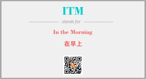 英文缩略词“ITM”经常作为“In the Morning”的英文缩写来使用,中文表示:“在早上”。本文将详细介绍英文缩写词ITM所代表英文单词,其对应的中文拼音、详细解释以及在英语中的流行度。此外,还有关于缩略词ITM的分类、应用领域及相关应用示例等。