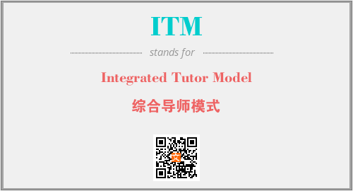 上述内容是“Integrated Tutor Model”作为“ITM”的缩写,解释为“综合导师模式”时的信息,以及英文缩略词ITM所代表的英文单词,其对应的中文拼音、详细解释以及在英文中的流行度和相关分类、应用领域及应用示例等。