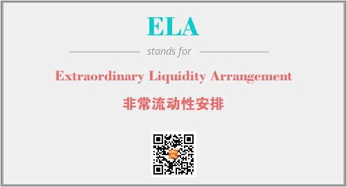 上述内容是“Extraordinary Liquidity Arrangement”作为“ELA”的缩写,解释为“非常流动性安排”时的信息,以及英文缩略词ELA所代表的英文单词,其对应的中文拼音、详细解释以及在英文中的流行度和相关分类、应用领域及应用示例等。