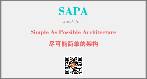 上述内容是“Simple As Possible Architecture”作为“SAPA”的缩写,解释为“尽可能简单的架构”时的信息,以及英文缩略词SAPA所代表的英文单词,其对应的中文拼音、详细解释以及在英文中的流行度和相关分类、应用领域及应用示例等。