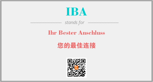 上述内容是“Ihr Bester Anschluss”作为“IBA”的缩写,解释为“您的最佳连接”时的信息,以及英文缩略词IBA所代表的英文单词,其对应的中文拼音、详细解释以及在英文中的流行度和相关分类、应用领域及应用示例等。