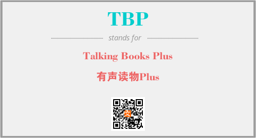 以上为Talking Books Plus英文缩略词TBP的中文解释,以及该英文缩写在英语的流行度、分类和应用领域方面的信息。