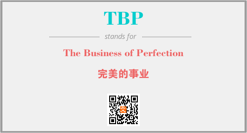 英文缩略词“TBP”经常作为“The Business of Perfection”的英文缩写来使用,中文表示:“完美的事业”。本文将详细介绍英文缩写词TBP所代表英文单词,其对应的中文拼音、详细解释以及在英语中的流行度。此外,还有关于缩略词TBP的分类、应用领域及相关应用示例等。