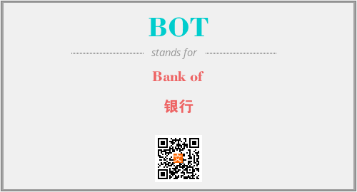 英文缩略词“BOT”经常作为“Bank of”的英文缩写来使用,中文表示:“银行”。本文将详细介绍英文缩写词BOT所代表英文单词,其对应的中文拼音、详细解释以及在英语中的流行度。此外,还有关于缩略词BOT的分类、应用领域及相关应用示例等。