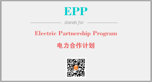 上述内容是“Electric Partnership Program”作为“EPP”的缩写,解释为“电力合作计划”时的信息,以及英文缩略词EPP所代表的英文单词,其对应的中文拼音、详细解释以及在英文中的流行度和相关分类、应用领域及应用示例等。