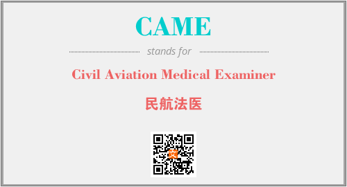 以上为Civil Aviation Medical Examiner英文缩略词CAME的中文解释,以及该英文缩写在英语的流行度、分类和应用领域方面的信息。