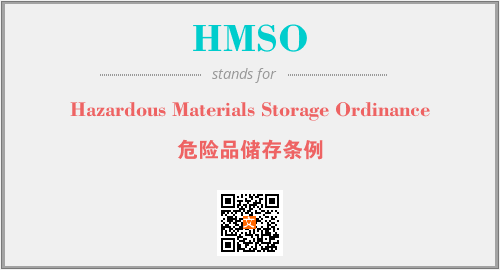 英文缩略词“HMSO”经常作为“Hazardous Materials Storage Ordinance”的英文缩写来使用,中文表示:“危险品储存条例”。本文将详细介绍英文缩写词HMSO所代表英文单词,其对应的中文拼音、详细解释以及在英语中的流行度。此外,还有关于缩略词HMSO的分类、应用领域及相关应用示例等。