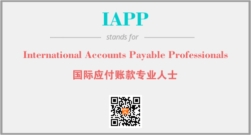 英文缩略词“IAPP”经常作为“International Accounts Payable Professionals”的英文缩写来使用,中文表示:“国际应付账款专业人士”。本文将详细介绍英文缩写词IAPP所代表英文单词,其对应的中文拼音、详细解释以及在英语中的流行度。此外,还有关于缩略词IAPP的分类、应用领域及相关应用示例等。