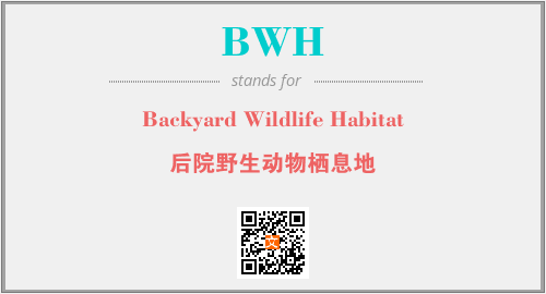 上述内容是“Backyard Wildlife Habitat”作为“BWH”的缩写,解释为“后院野生动物栖息地”时的信息,以及英文缩略词BWH所代表的英文单词,其对应的中文拼音、详细解释以及在英文中的流行度和相关分类、应用领域及应用示例等。