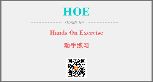 上述内容是“Hands On Exercise”作为“HOE”的缩写,解释为“动手练习”时的信息,以及英文缩略词HOE所代表的英文单词,其对应的中文拼音、详细解释以及在英文中的流行度和相关分类、应用领域及应用示例等。
