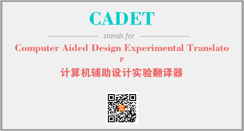 英文缩略词“CADET”经常作为“Computer Aided Design Experimental Translator”的英文缩写来使用,中文表示:“计算机辅助设计实验翻译器”。本文将详细介绍英文缩写词CADET所代表英文单词,其对应的中文拼音、详细解释以及在英语中的流行度。此外,还有关于缩略词CADET的分类、应用领域及相关应用示例等。