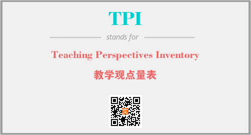 以上为Teaching Perspectives Inventory英文缩略词TPI的中文解释,以及该英文缩写在英语的流行度、分类和应用领域方面的信息。