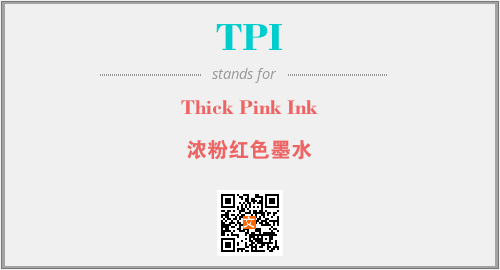 英文缩略词“TPI”经常作为“Thick Pink Ink”的英文缩写来使用,中文表示:“浓粉红色墨水”。本文将详细介绍英文缩写词TPI所代表英文单词,其对应的中文拼音、详细解释以及在英语中的流行度。此外,还有关于缩略词TPI的分类、应用领域及相关应用示例等。