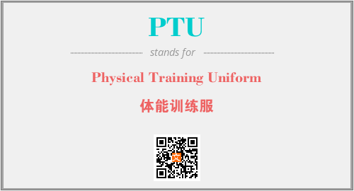 上述内容是“Physical Training Uniform”作为“PTU”的缩写,解释为“体能训练服”时的信息,以及英文缩略词PTU所代表的英文单词,其对应的中文拼音、详细解释以及在英文中的流行度和相关分类、应用领域及应用示例等。