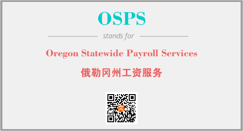 上述内容是“Oregon Statewide Payroll Services”作为“OSPS”的缩写,解释为“俄勒冈州工资服务”时的信息,以及英文缩略词OSPS所代表的英文单词,其对应的中文拼音、详细解释以及在英文中的流行度和相关分类、应用领域及应用示例等。