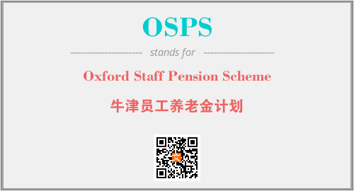 上述内容是“Oxford Staff Pension Scheme”作为“OSPS”的缩写,解释为“牛津员工养老金计划”时的信息,以及英文缩略词OSPS所代表的英文单词,其对应的中文拼音、详细解释以及在英文中的流行度和相关分类、应用领域及应用示例等。