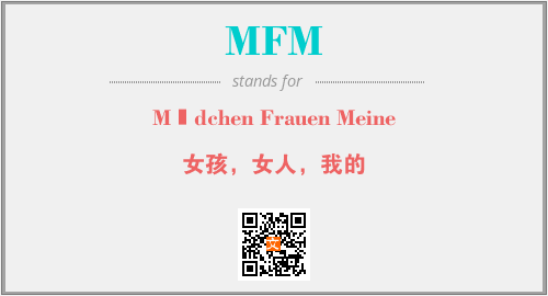 以上为Mädchen Frauen Meine英文缩略词MFM的中文解释,以及该英文缩写在英语的流行度、分类和应用领域方面的信息。