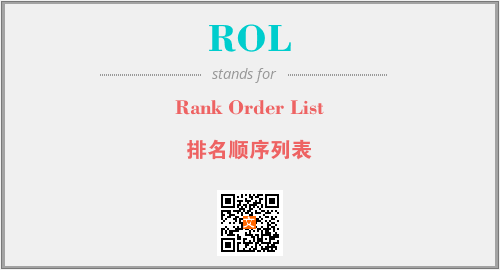 上述内容是“Rank Order List”作为“ROL”的缩写,解释为“排名顺序列表”时的信息,以及英文缩略词ROL所代表的英文单词,其对应的中文拼音、详细解释以及在英文中的流行度和相关分类、应用领域及应用示例等。