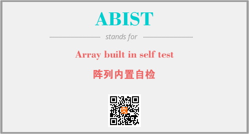 英文缩略词“ABIST”经常作为“Array built in self test”的英文缩写来使用,中文表示:“阵列内置自检”。本文将详细介绍英文缩写词ABIST所代表英文单词,其对应的中文拼音、详细解释以及在英语中的流行度。此外,还有关于缩略词ABIST的分类、应用领域及相关应用示例等。