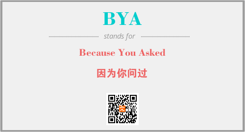 上述内容是“Because You Asked”作为“BYA”的缩写,解释为“因为你问过”时的信息,以及英文缩略词BYA所代表的英文单词,其对应的中文拼音、详细解释以及在英文中的流行度和相关分类、应用领域及应用示例等。