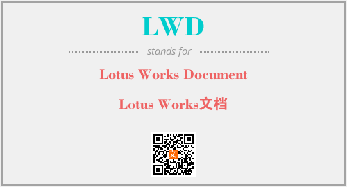 英文缩略词“LWD”经常作为“Lotus Works Document”的英文缩写来使用,中文表示:“Lotus Works文档”。本文将详细介绍英文缩写词LWD所代表英文单词,其对应的中文拼音、详细解释以及在英语中的流行度。此外,还有关于缩略词LWD的分类、应用领域及相关应用示例等。