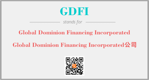 上述内容是“Global Dominion Financing Incorporated”作为“GDFI”的缩写,解释为“Global Dominion Financing Incorporated公司”时的信息,以及英文缩略词GDFI所代表的英文单词,其对应的中文拼音、详细解释以及在英文中的流行度和相关分类、应用领域及应用示例等。