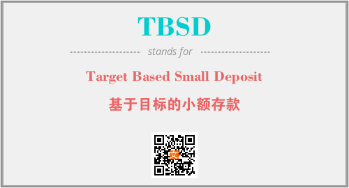 英文缩略词“TBSD”经常作为“Target Based Small Deposit”的英文缩写来使用,中文表示:“基于目标的小额存款”。本文将详细介绍英文缩写词TBSD所代表英文单词,其对应的中文拼音、详细解释以及在英语中的流行度。此外,还有关于缩略词TBSD的分类、应用领域及相关应用示例等。