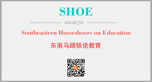 英文缩略词“SHOE”经常作为“Southeastern Horseshoers on Education”的英文缩写来使用,中文表示:“东南马蹄铁论教育”。本文将详细介绍英文缩写词SHOE所代表英文单词,其对应的中文拼音、详细解释以及在英语中的流行度。此外,还有关于缩略词SHOE的分类、应用领域及相关应用示例等。