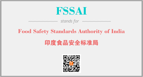 上述内容是“Food Safety Standards Authority of India”作为“FSSAI”的缩写,解释为“印度食品安全标准局”时的信息,以及英文缩略词FSSAI所代表的英文单词,其对应的中文拼音、详细解释以及在英文中的流行度和相关分类、应用领域及应用示例等。